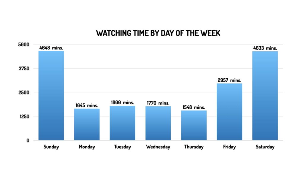 - Time spent watching movies or series each day of the week.
