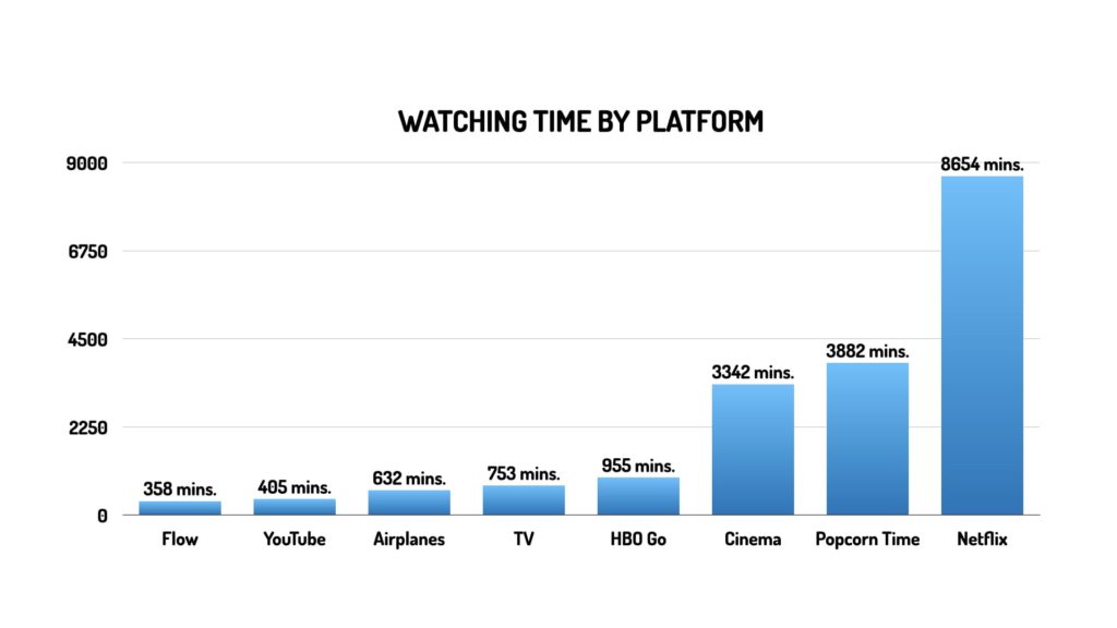 Although I try to pirate as little as I can, Popcorn Time comes second with 3882 minutes; but It’s compensated by how much I go to the Cinema, with it’s 3342 minutes.